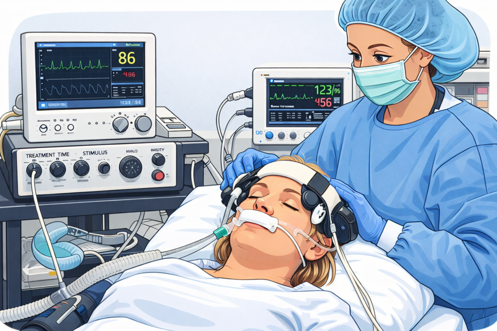 Electroconvulsive Therapy (ECT) is a safe and medically supervised treatment performed under general anesthesia. During the procedure, a carefully controlled, small electrical current is passed through the brain to intentionally trigger a brief, therapeutic seizure.
